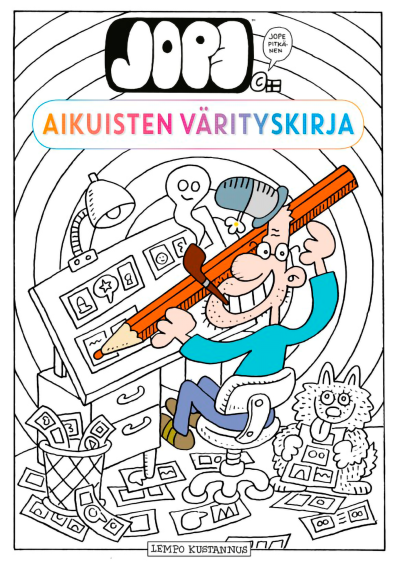 Vanha ja väsynyt sarjakuvapiirtäjä on pulassa. Mitäpä jos värittäisit hänen mustavalkoiset sankarinsa värikkäämmiksi ja virkistyisit itsekin? Jopen tutut sarjakuvahahmot seikkailevat nyt värityskirjan sivuilla! Pikkutuhmia kuvia sisältävä kirjanen ei sovi perheen pienimmille, mutta muuten ihan jokaiselle Jopen ystävälle!