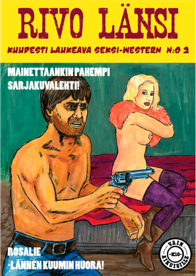 Rivon Lännen kakkonen on mainettaankin pahempi! Kovin, seksikkäin ja yksinkertaisesti vain paras! Tästä numerosta voit lukea kaiken Rosaliestä, Villin Lännen perversseimmästä ilotytöstä. Kiero Dick on häpeämättömästi sukeltanut alitajuntansa pohjaan asti ja kaivanut albumin sivuille toinen toistaan ihastuttavampia lännenhahmoja antamaan oman todistuksensa Rosaliesta. Näitä henkilöitä ovat mm. nahkarevolverin mestari William, himokas intiaani Seisova Toteemi, mällinkatkuinen lainsuojaton Runkkaileva rosvo sekä kiellettyä rakkautta janoava Frank-Homo. Rivon Lännen esikuvat löytyvät italialaisista fumeteista, joita julkaistiin suomeksi 80-luvun vaihteessa mm. nimillä Karzan, Murhasanomat, Seksilänkkäri ja Kanki Kukkonen. Nykyään nämä pokkarit ovat himoittuja keräilyharvinaisuuksia. Huom! Albumia ei suositella lapsille eikä huumorintajuttomille aikuisille. With english subtitles.